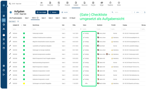 - Unterschiedliche Aufgabensichten für verschiedene Arten von Checklisten (z.B. Gates, APQP-Aufgaben, Serienüberleitung) sind frei konfigurierbar.