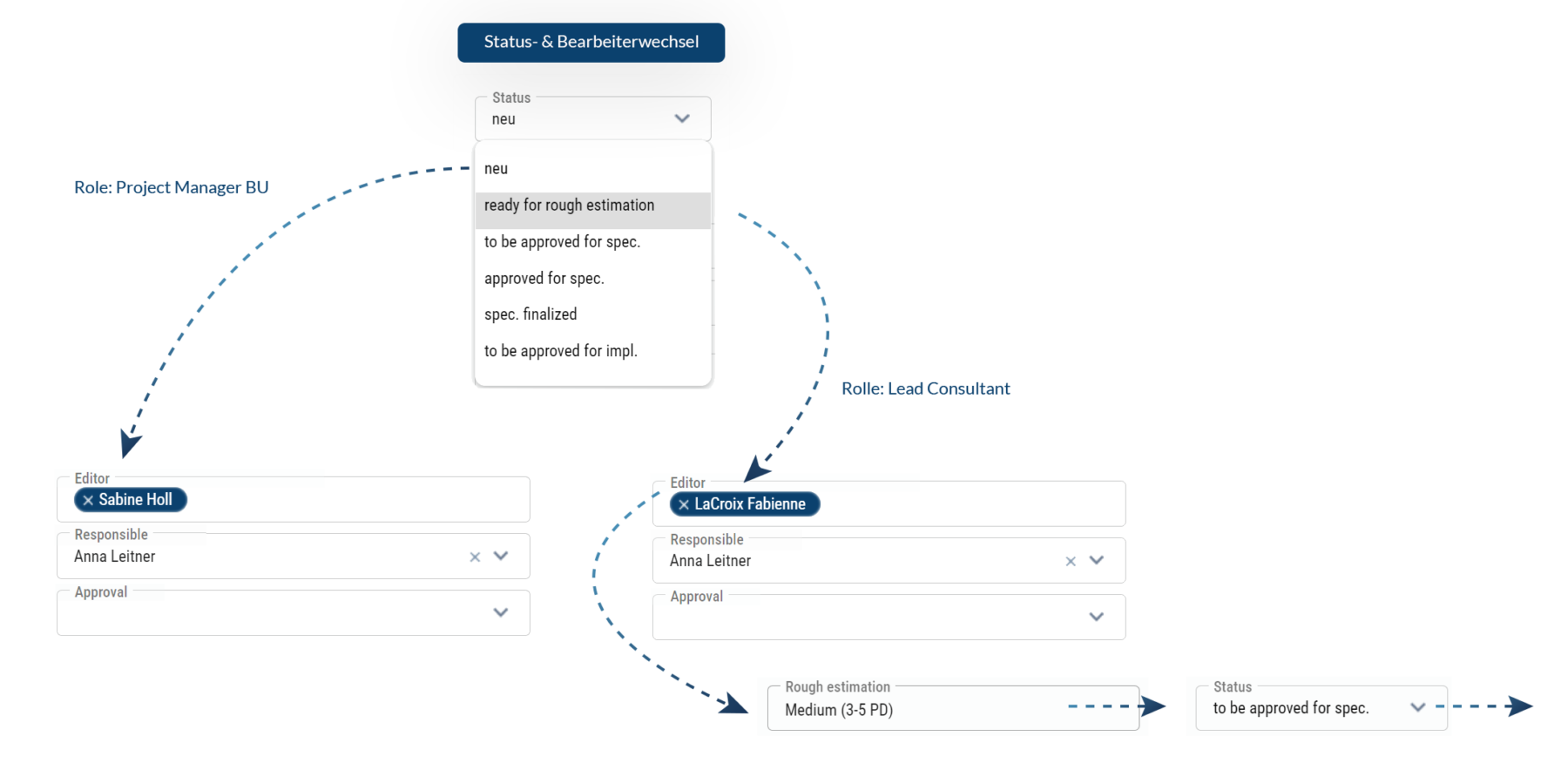 - After justification of the requirement and a rough estimate of the effort involved, the first approval stage takes place