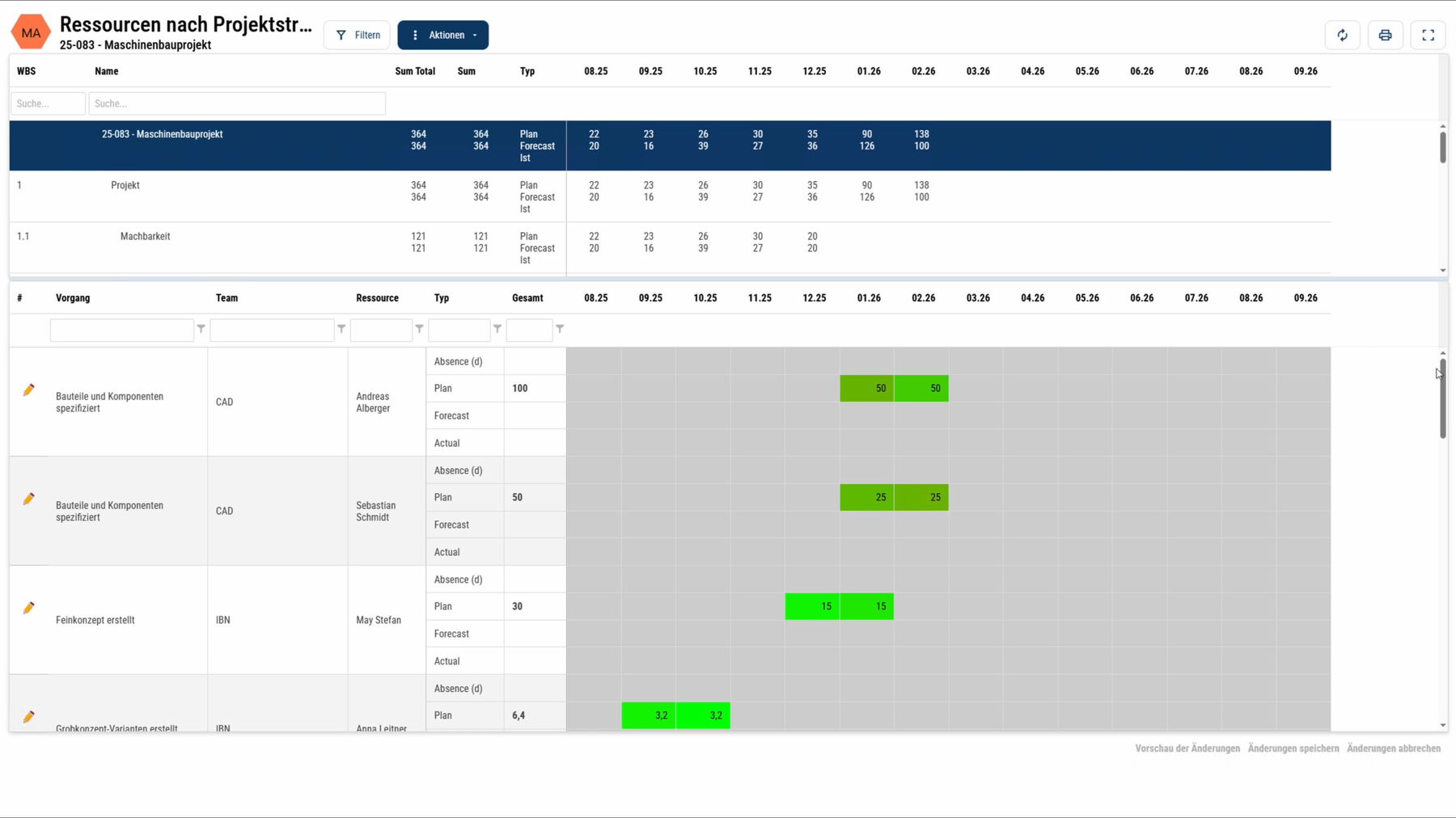 Ressourcenplanung - Plan, Forecast und Ist gegenüberstellen